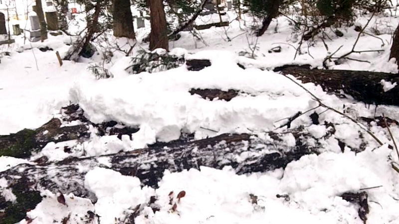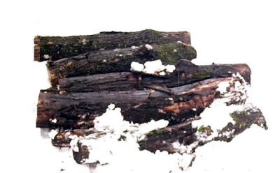 腰がイタイ、と手抜き ・・ 薪作りしなかったツケ ・・・ 伐った大木が雪の下