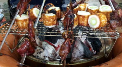 ハチトリ宴会場の ・・・十八番 ・・・ といえば 「直火 料理」