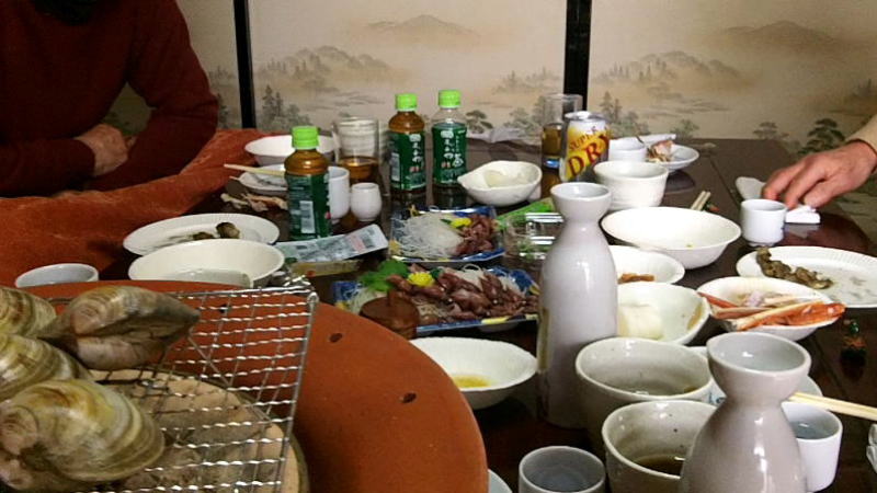宴会の画像が無い と、書いたら、さっそく田中さんから送られてきました 清水さんの手打ちそば 下方は 見本に持って来てくれた つなぎ の 「おやまぼくち」 生 ズワイガニ の 焼き蟹 70代なかば の 爺さん5人・昼宴会 今年も無事 大団円(だいだんえん) と なりましたのは、慶賀の至り ♪ この日の為に ♪ ※ この歌が歌われた1964年、オラは14才、中学3年生でした