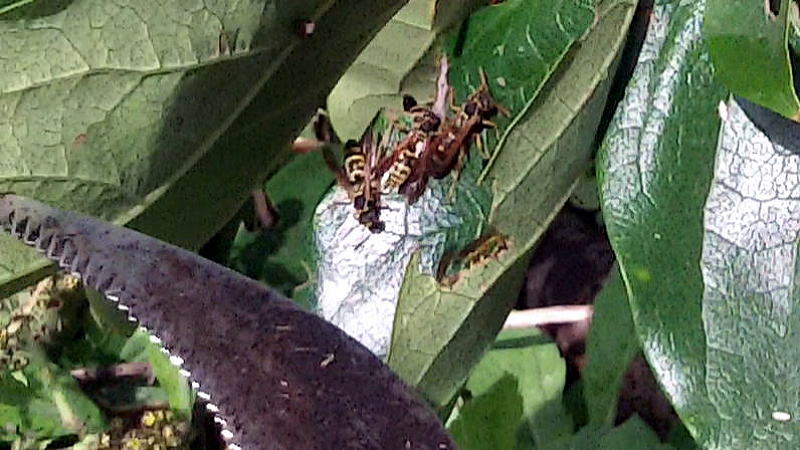草刈鎌で慎重に葉っぱをめくってみると ・・・ いた〜っ!