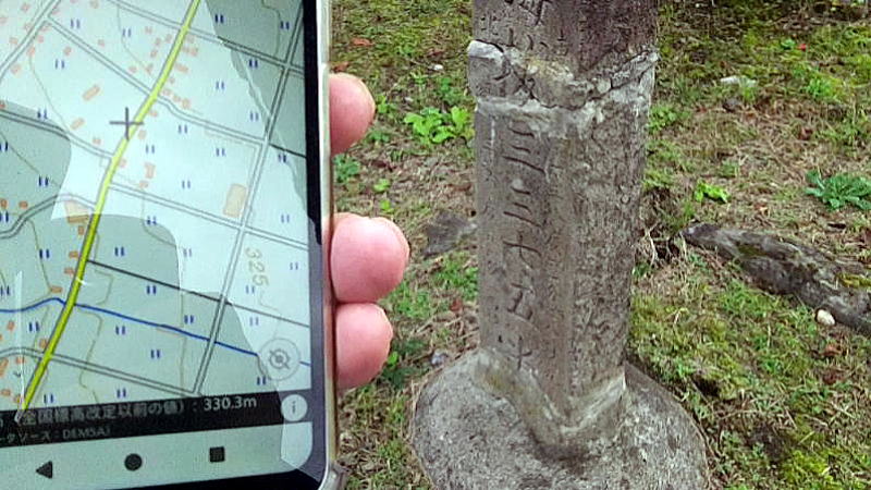 スマホ・国土地理院・GPSの表示 ・・・ 標高 330.3 m