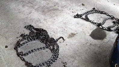 チェーン 巻くのも、外すのも タ〜イヘン