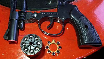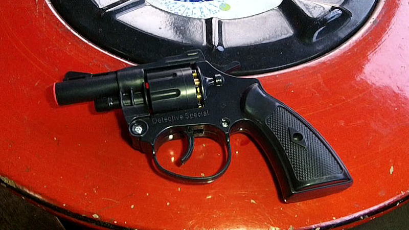 我が家・玄関 薪ストーブ・脇 春夏秋・サイドテーブル、冬・煉炭火鉢 こんなモノ、無造作に置いてます オモチャ = 百均 = 火薬で大きな音 ⇒ クマ 追い払い用 本日は、尾崎集落・早朝作業 開始前 コレで、 集落回りの クマ追い払いを実施 軽トラ乗ったまま、運転席で撃つ=安全 爆竹と違って、アトにゴミが残らない 山火事の恐れもない ただし、 しょせんは 「百均」 すぐ壊れます 使い捨て ・・・ の気持 ・・・ お忘れなく。