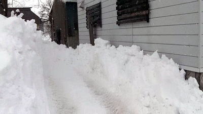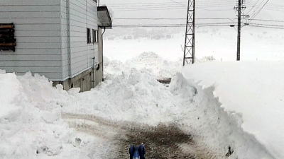 しかし、屋根から落ちた雪、二階の窓まで届いた