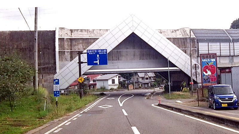 正面は北陸新幹線トンネル、飯山駅(右側)