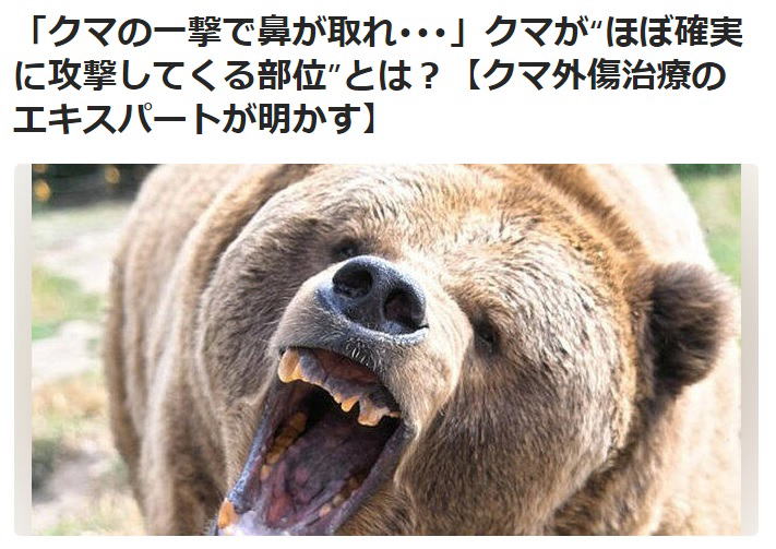 画像クリックで記事が読めます インターネットの、クマ対策情報 は 役に立ちます さらに、オラが過去に 仕入れた情報 & 経験で書いた内容 も、役に立つかもしれません クマが人を襲う時 クマ追い払いグッズ 山に入る時は クマは物置をさぐる クマは用心深い 柿の木は防波堤 撃たれてもスグには倒れない 撃たない選択もある 素朴な質問に答える クマを誤解させてはいけない 最後に、前回(2012年10月) の 長野市街地・クマ騒動