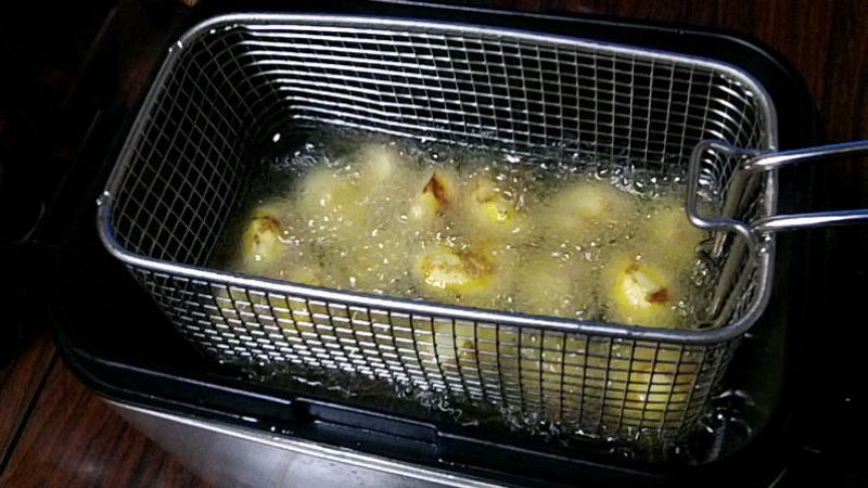 目の前で栗を揚げ ・・・ 食べさせる店 ・・・ いや、家庭も