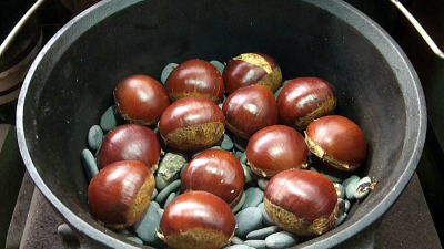 これですよ、これ 冷蔵庫で ・・・ 1か月、熟成させた ・・・ ポロタン栗 石焼きで、天津甘栗 を 超えるか? じゃ〜んっ! どっ ひゃ〜っ! この色、 この大きさ! かくして シブカワが ぽろっと剥ける ポロタン栗 紆余 曲折 の 末 本領発揮は やっぱり 石焼き と、 ゆ〜 ワケ で みなさま ・・・ 我が家の薪ストーブで ・・・ お待ちしてま〜っす!