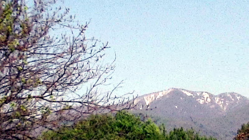飯山市・長峰運動公園の桜 2週間 後(↑) 同じ場所 同じ被写体 見比べて、ビックリ! 桜と雪山 ・・・ 主役だった ・・・ のに たった 2週間後 中間の新緑、主役 奪取! 「時」 の経過、恐るべし 人の世 また、しかり 心得べし。
