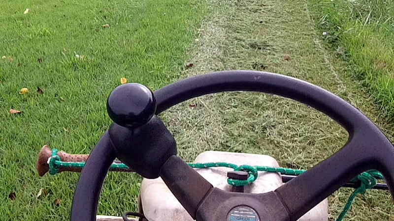 庭の外側から時計回り ・・・ すなわち ・・・ 刈り草を右へ右へ