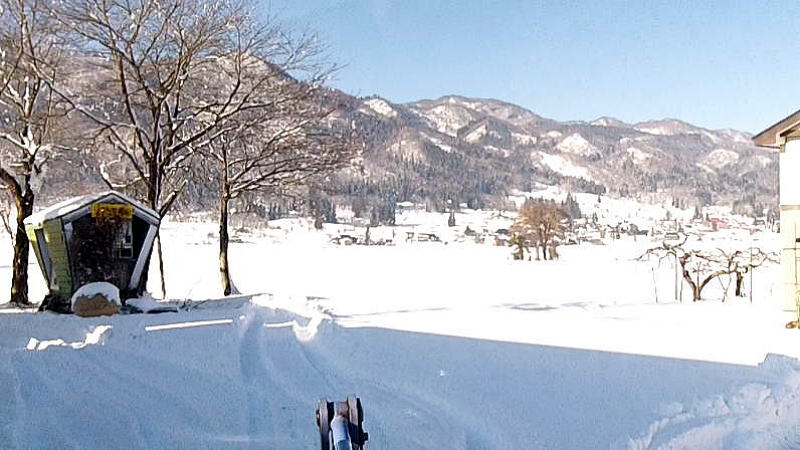 初雪も、 次に降った雪も、 そのつど、融けちゃって 今回の雪 ・・・ 量は多いが ・・・ 凍ってない地面に積もった雪 始末が悪い 四輪にチェーンを巻いたホイールローダー 走り回ると 地面を傷つけ、泥んこになってしまう そんな苦労しながら、 除雪 ・・・ とは逆、 裏庭から表庭に雪を運び 「庭・すべり台」 完成! はたして 孫たちは、喜んでくれるでしょうか? (まるで、ポツンと一軒家、みたいだね)