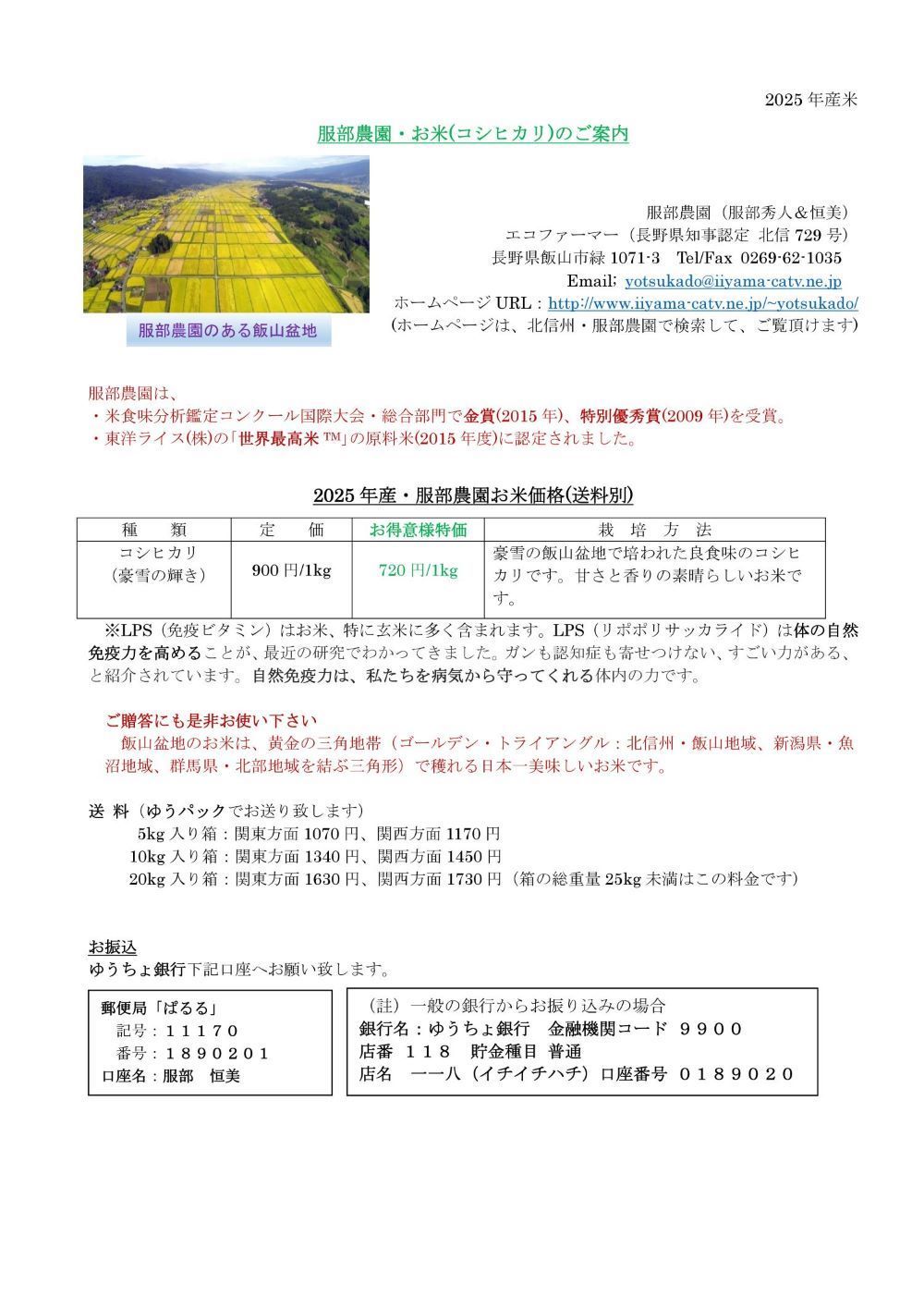 2025年産・服部農園お米のご案内です・・・